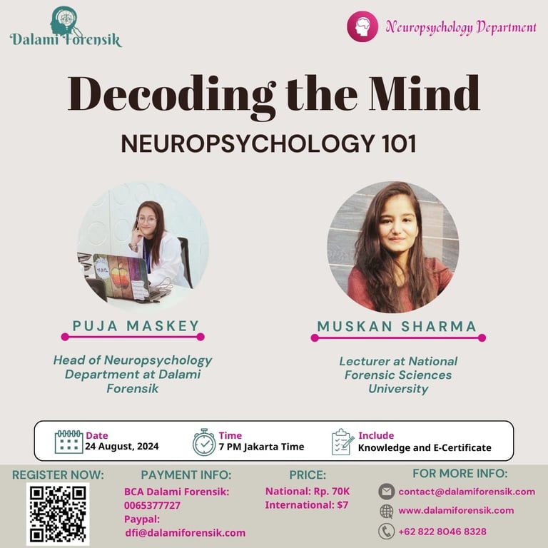 Dengan senang hati kami mengumumkan webinar kami yang akan datang, Decoding the Mind, dengan fokus pada Neuropsikologi 101. Ini adalah kesempatan luar biasa bagi siapa pun yang tertarik pada pikiran manusia, baik Anda seorang pelajar, profesional, atau sekadar penasaran tentang bagaimana otak kita bekerja.